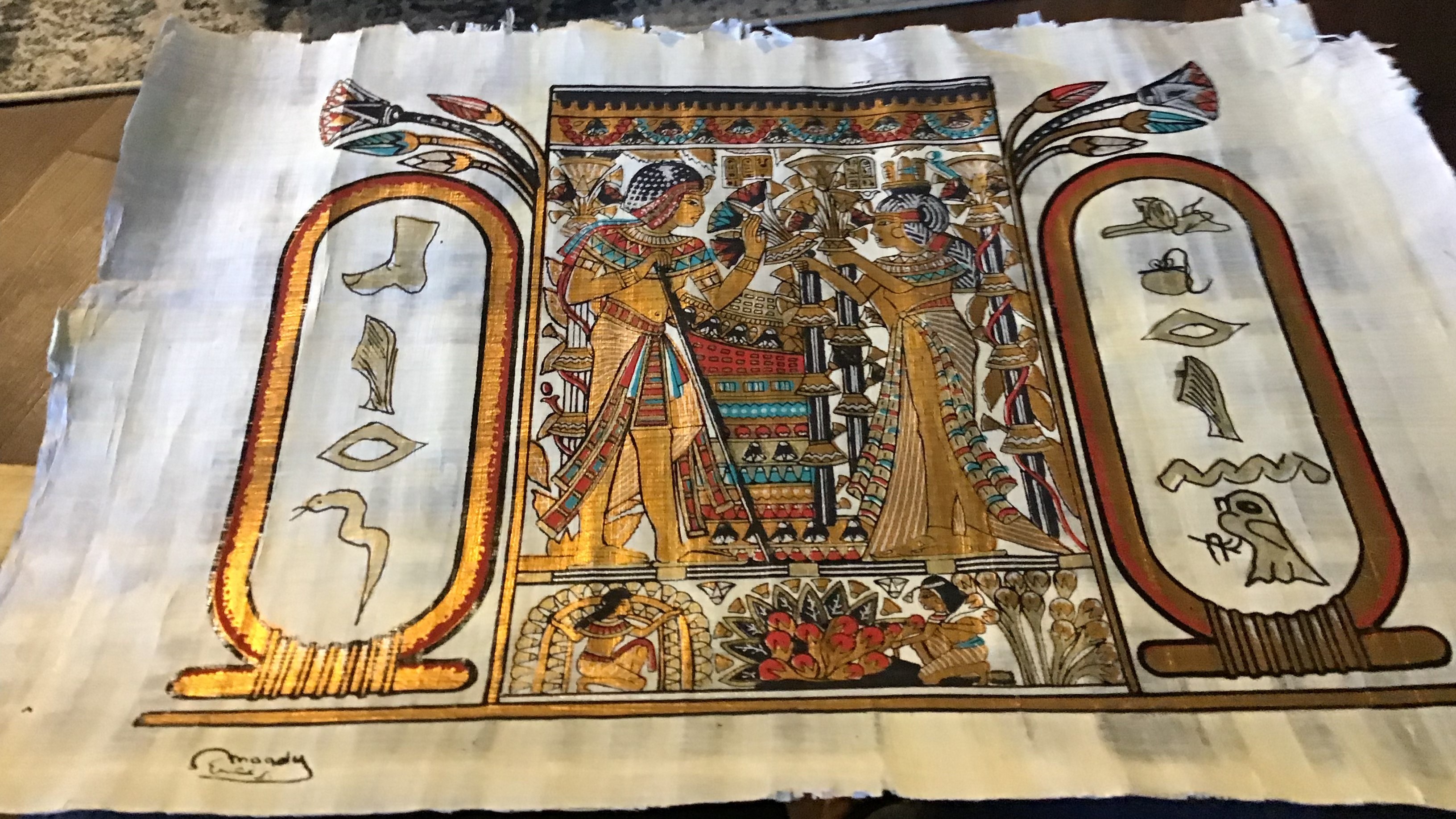 Egyptian Papyrus Hand Made and PaintedAuthentic Hand Painted Ancient Egyptian Papyrus, Replica9 x 13 Papyrus PrintPrice $ VIEW | Egyptian Papyrus Hand Made and PaintedEgyptian God Ra Harakhti With Queen Cleopatra9 x 13 Papyrus PrintPrice $ VIEW | Egyptian Papyrus Hand Made and PaintedRare Papyrus Painting Depicting A Ceremonial Ancient Egyptian9 x 13 Papyrus PrintPrice $ VIEW |